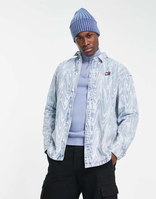 Tommy Jeans – Niebieska jeansowa koszula wierzchnia w graficzny marmurowy wzór