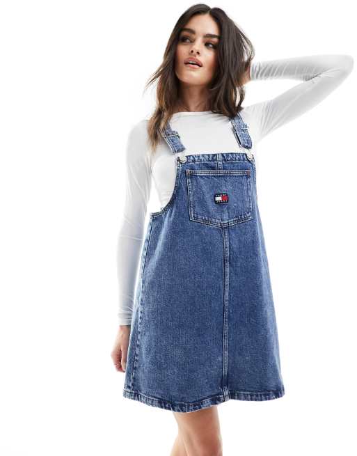 Tommy Jeans – Niebieska jeansowa sukienka na szelkach