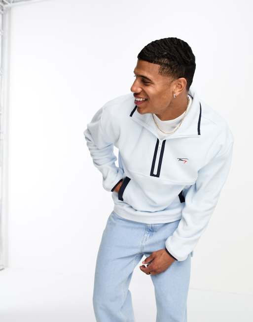 Tommy Jeans – Niebieski luźny polar z zamkiem pod szyją