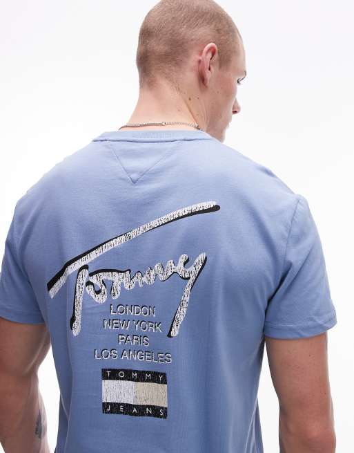 Tommy Jeans – Niebieski T-shirt o regularnym kroju z logo z przodu i z tyłu