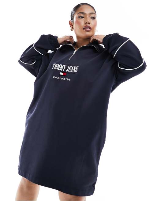 Tommy Jeans Plus – Granatowa sukienka z zamkiem pod szyją