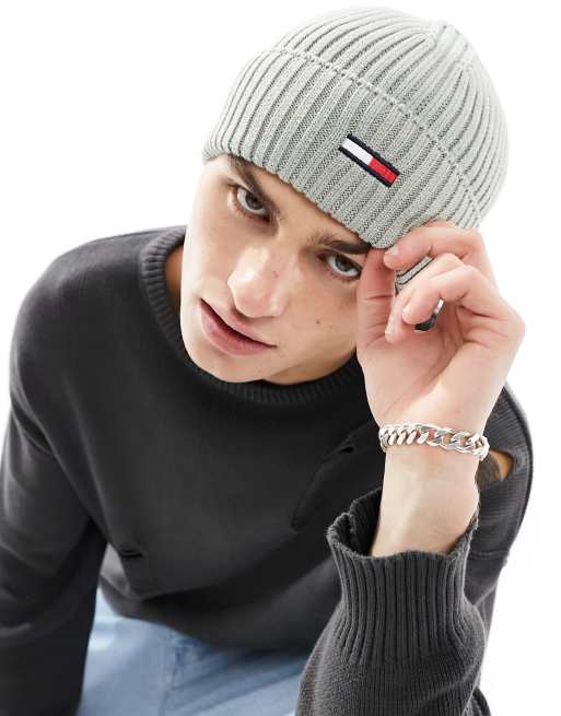 Tommy Jeans – Prążkowana szara czapka beanie z logo z flagą