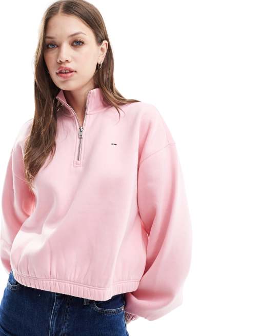 Tommy Jeans – Różowa bluza o pudełkowym kroju z zamkiem pod szyją