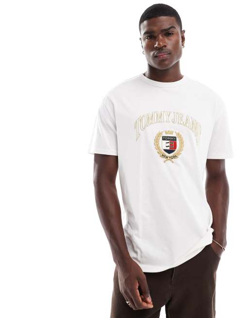 Tommy Jeans – T-shirt w kolorze złamanej bieli z logo z herbem