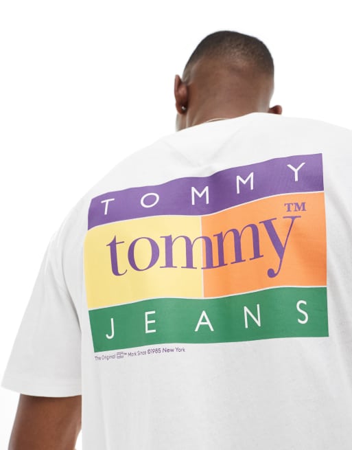 Tommy Jeans Unisex – Biały T-shirt o regularnym kroju z logo z flagą