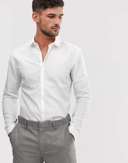 Topman – Biała dopasowana koszula z egipskiej bawełny premium z okrągłym kołnierzykiem