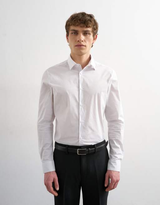 Topman – Biała elegancka koszula ze stretchem o dopasowanym kroju z długimi rękawami