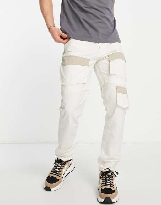 Topman – Białe obcisłe bojówki z elastycznymi mankietami