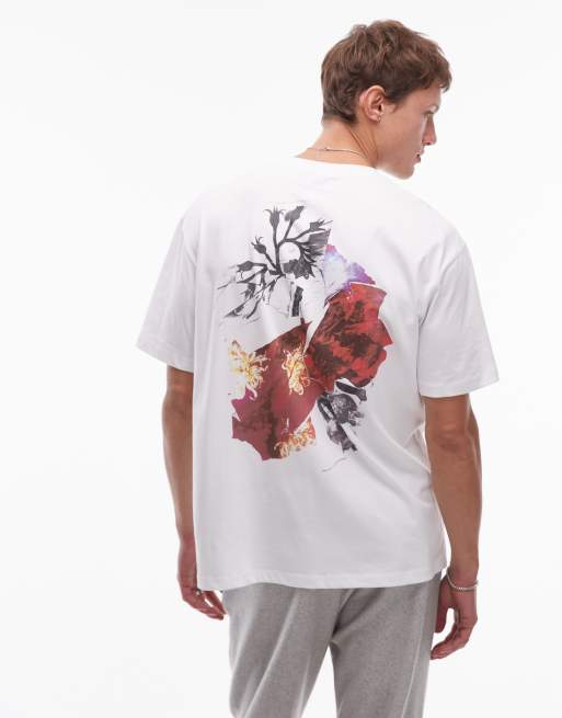 Topman – Biały luźny T-shirt z nadrukiem kwiatowym z przodu i z tyłu