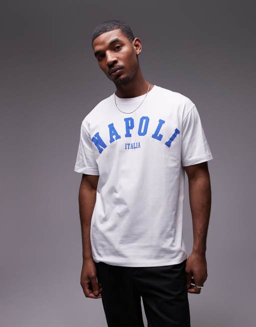 Topman – Biały T-shirt o luźnym kroju z motywem Napoli