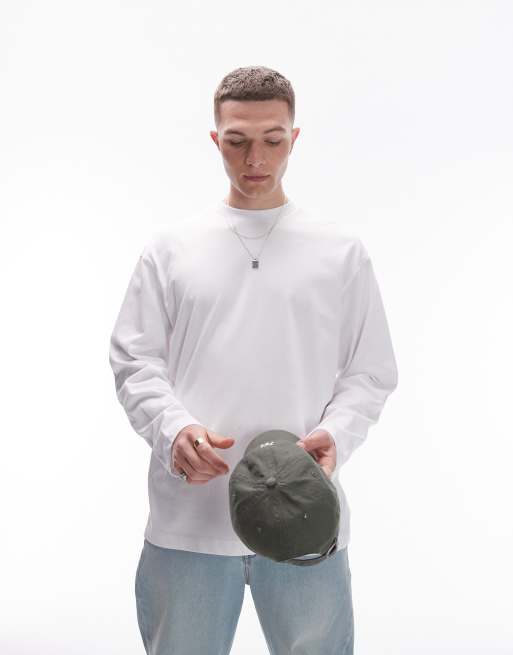 Topman – Biały T-shirt oversize typu skater z długimi rękawami i ozdobnym szwem