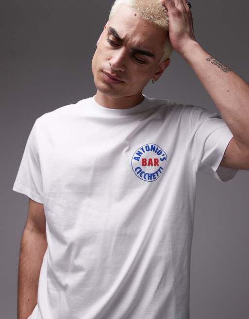 Topman – Biały T-shirt z wypukłym nadrukiem z napisem „Antonio's Bar”