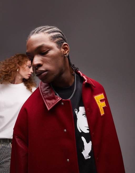 Topman – Bordowa kurtka varsity z wyhaftowanymi płomieniami