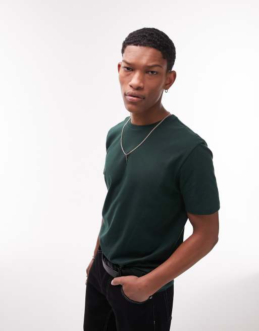 Topman – Ciemnozielony T-shirt o klasycznym kroju
