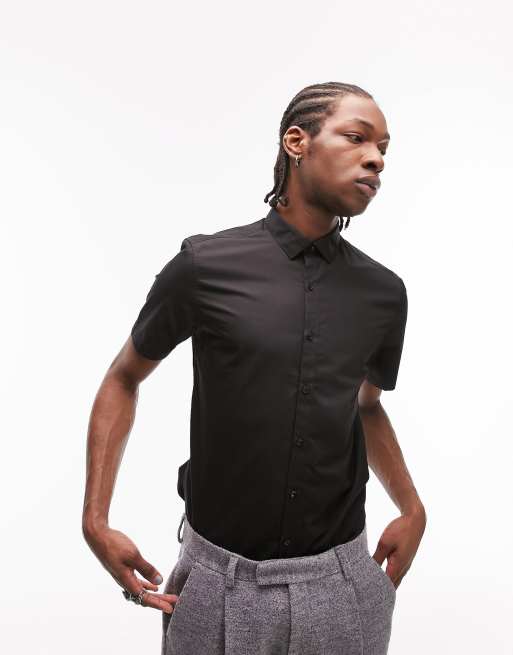 Topman – Czarna elegancka koszula z krótkimi rękawami, ze stretchem