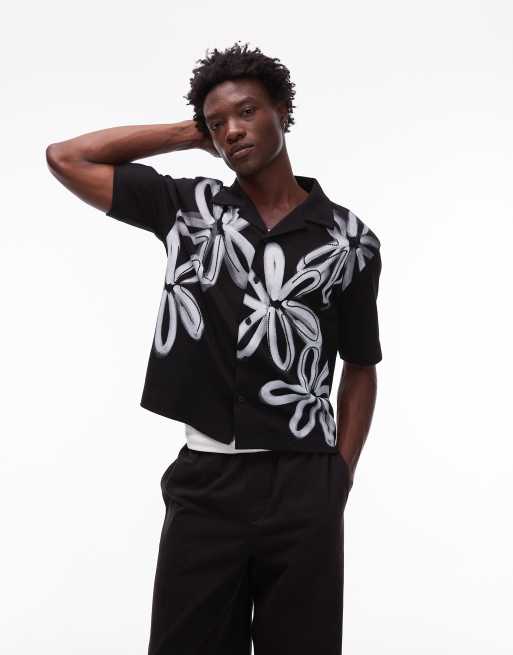 Topman – Czarna krótka koszula dżersejowa zapinana na guziki