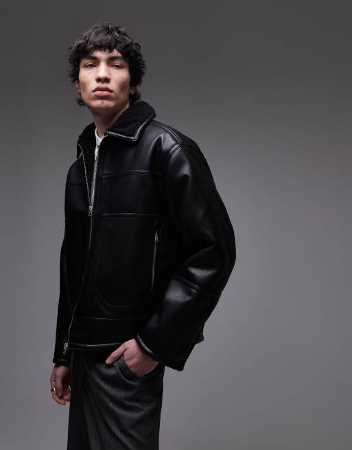 Topman – Czarna kurtka z imitacji skóry z kożuszkiem i kieszeniami
