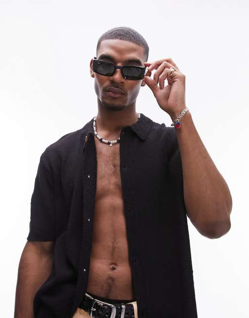 Topman – Czarna zapinana na guziki koszula z dziurkowanej dzianiny