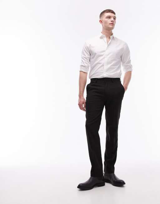 Topman – Czarne fakturowane spodnie garniturowe o dopasowanym kroju