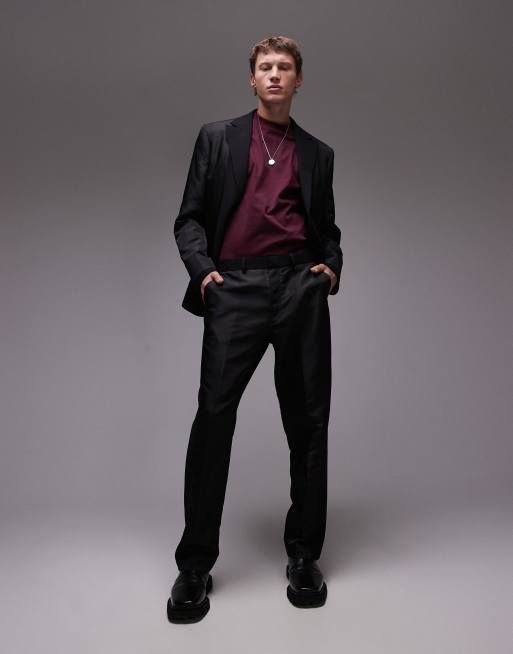 Topman – Czarne proste spodnie garniturowe z mieszanki materiałów