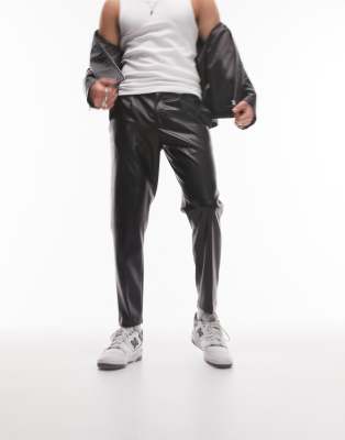 Topman – Czarne, zwężane spodnie z imitacji skóry