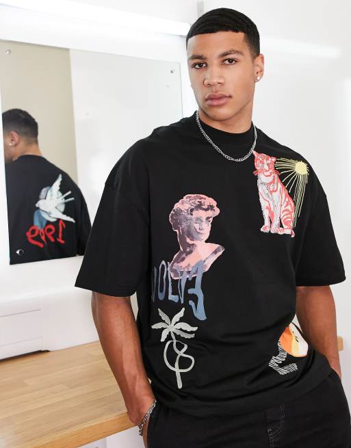Topman – Czarny T-shirt o kroju extreme oversize z nadrukiem