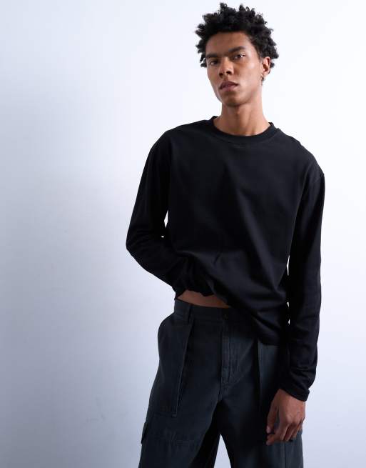 Topman – Czarny T-shirt o krótkim luźnym kroju z długimi rękawami