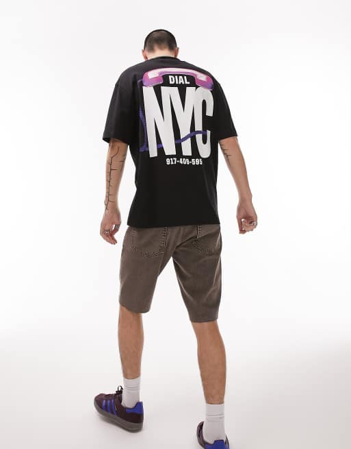 Topman – Czarny T-shirt oversize z nadrukiem z przodu i na plecach z motywem telefonu