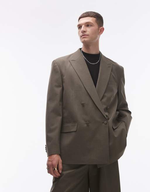 Topman – Dwurzędowa marynarka garniturowa o luźnym kroju w kolorze khaki