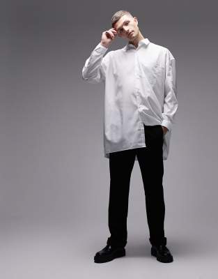 Topman – Elegancka biała koszula o fasonie super oversize z długim rękawem