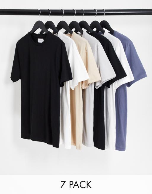 Topman Essentials – Zestaw 7 T-shirtów o regularnym kroju w kolorach czarnym, białym, szarobeżowym i szarym