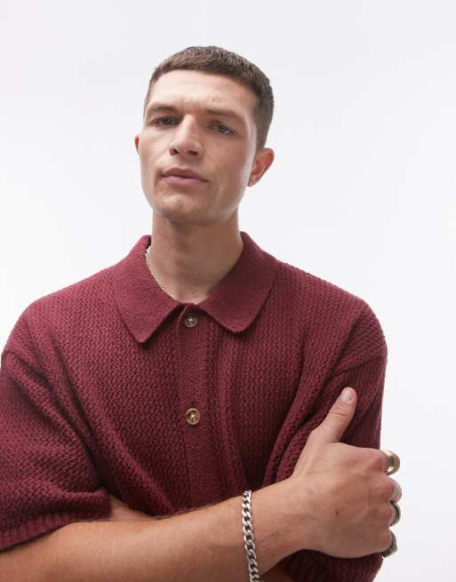 Topman – Fioletowa szydełkowana koszula zapinana na guziki