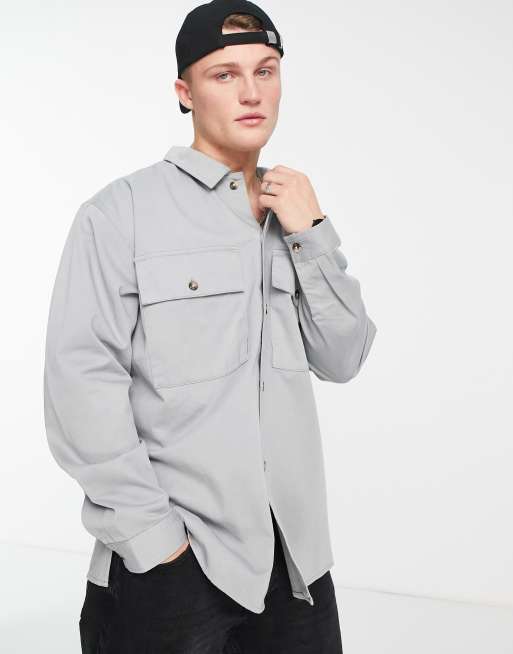 Topman – Grafitowa koszula wierzchnia super oversize z długimi rękawami