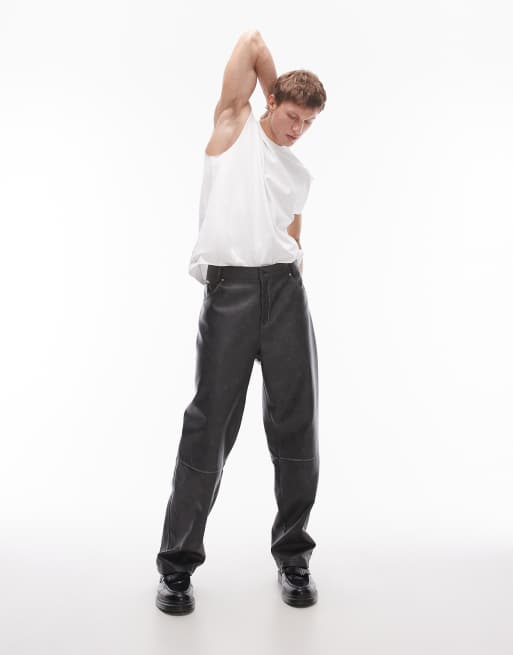 Topman – Grafitowe spodnie o prostym kroju z imitacji skóry z przetarciami, część zestawu