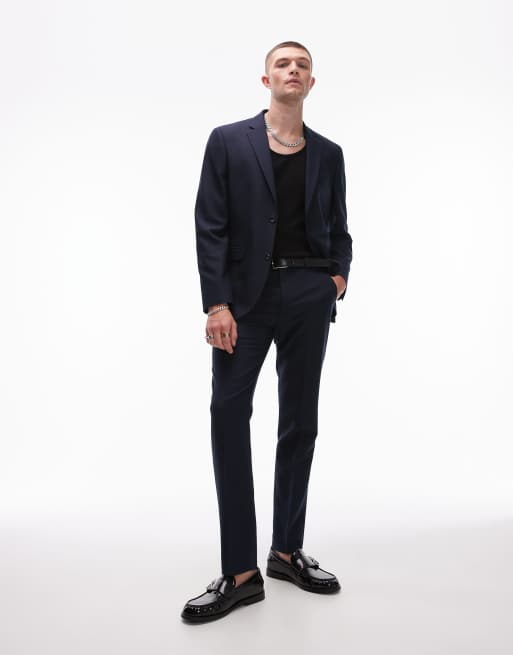 Topman – Granatowe spodnie garniturowe o obcisłym kroju