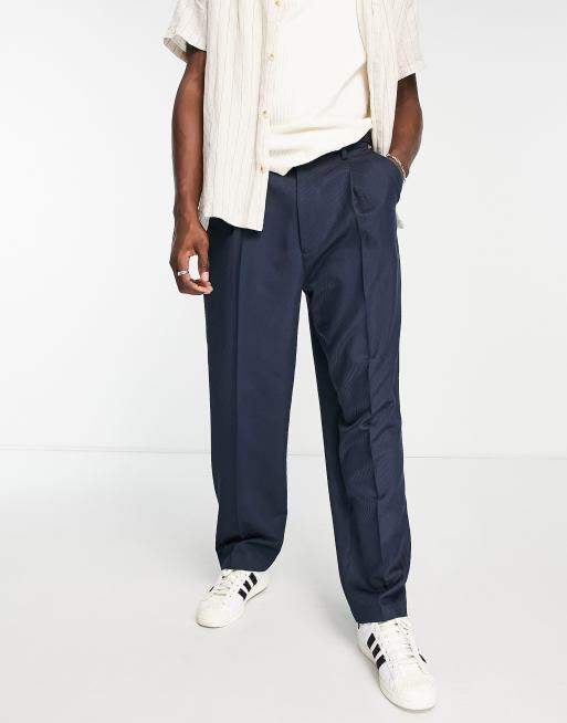 Topman – Granatowe spodnie z diagonalu z szerokimi nogawkami