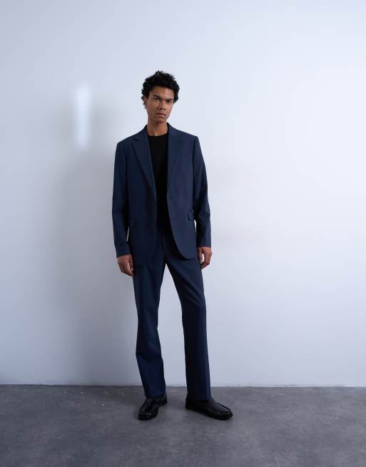 Topman – Granatowy garnitur o luźnym kroju z materiału o wyglądzie wełny