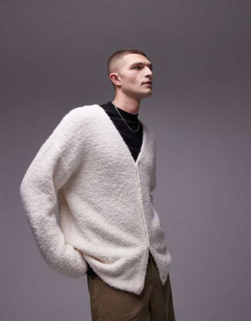 Topman – Jasnobeżowy luźny kardigan z dzianiny boucle