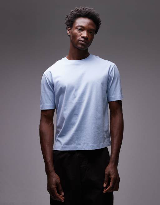 Topman – Jasnoniebieski T-shirt o krótkim kroju