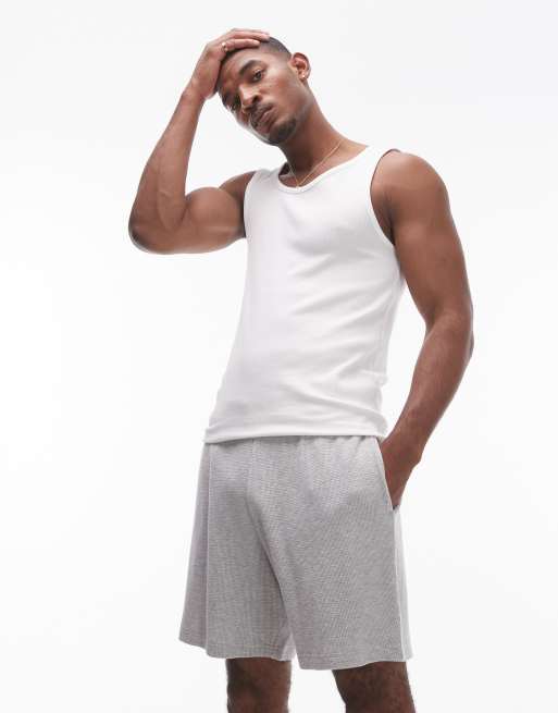 Topman – Jasnoszare szorty dresowe o waflowej strukturze
