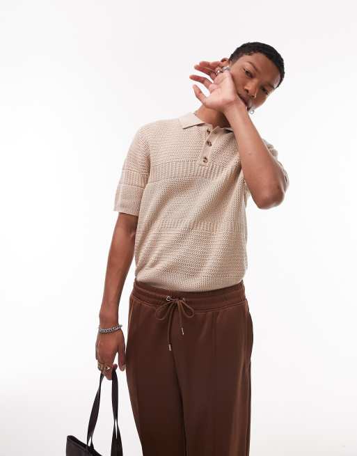 Topman – Kamiennobeżowa koszulka polo z teksturowanej dzianiny