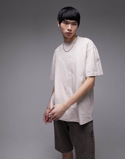 Topman – Kamiennobeżowy T-shirt oversize z wypukłym haftem Nowhere