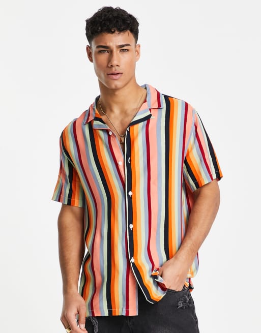 Topman – Koszula w kolorowe paski z krótkim rękawem i kołnierzykiem kubańskim