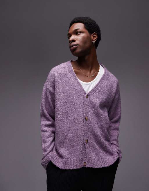 Topman – Liliowy luźny kardigan z dzianiny boucle
