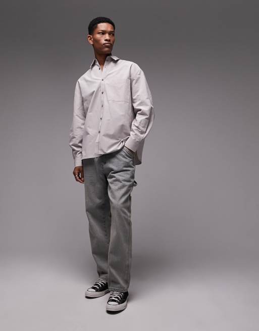 Topman Limited – Szarobeżowa koszula oversize z długim rękawem i kołnierzykiem w szpic