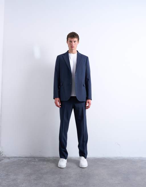 Topman – Luźna granatowa marynarka garniturowa z materiału o wyglądzie wełny