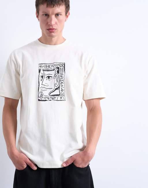 Topman – Luźny T-shirt z nadrukiem Mothers Keeper z przodu i z tyłu, w kolorze ecru