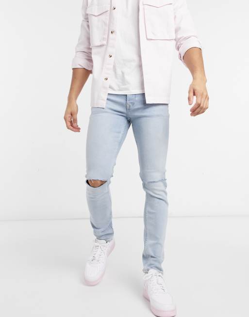 Topman – Niebieskie obcisłe jeansy z mieszanki bawełny ze stretchem i przetarciami – MBLUE