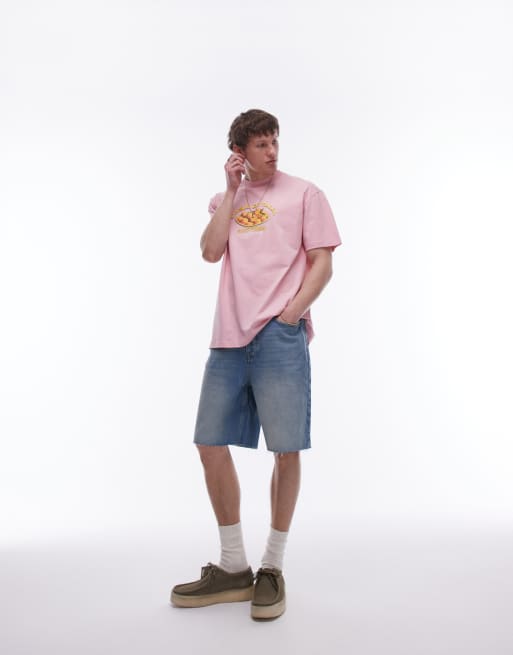 Topman – Niebieskie sprane szorty jeansowe z szerokimi, nieobszytymi nogawkami