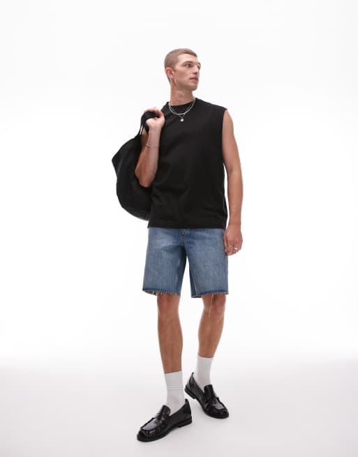 Topman – Niebieskie szorty jeansowe z prostymi nogawkami i nieobszytym brzegiem